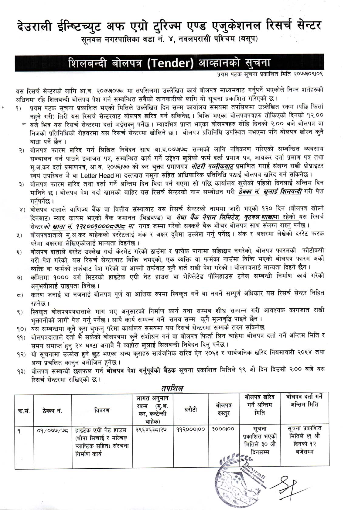 पुनः शिलबन्दी बोलपत्र (Tender) आव्हानको सुचना