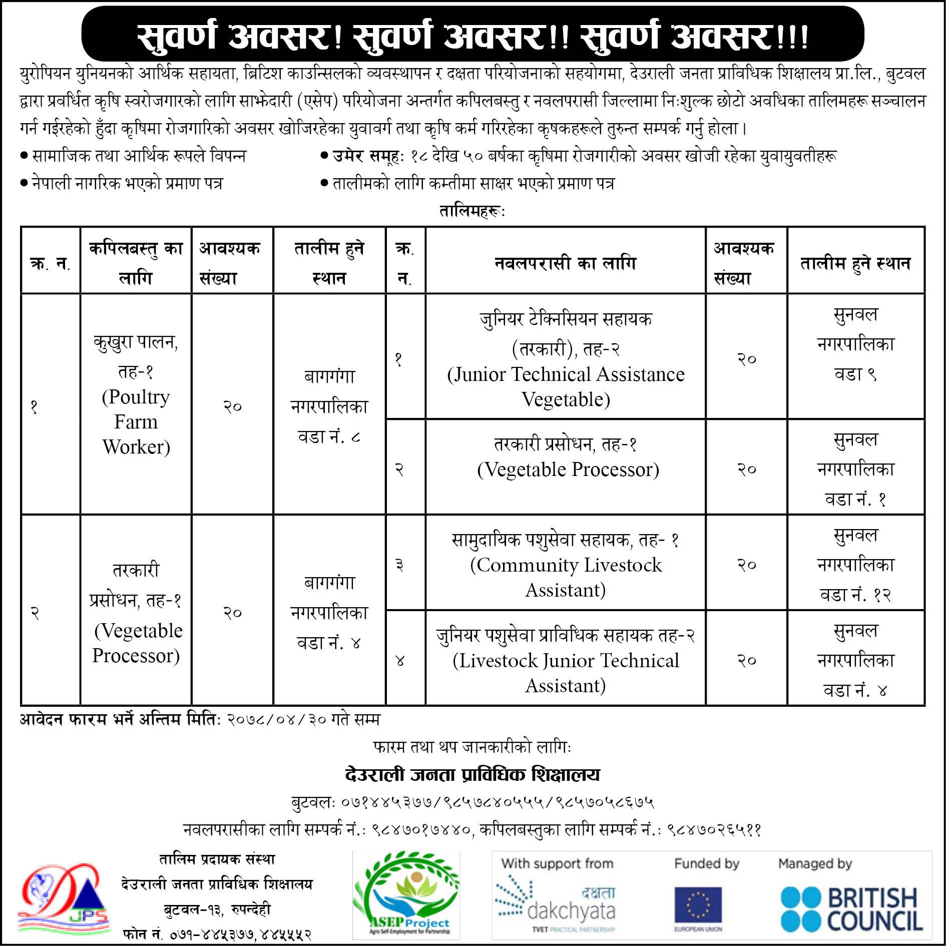 दक्षता परियाेजनाको निःशुल्क कृषि सम्बन्धी तालिमको सूचना